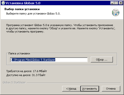 Вам будет предложено выбрать путь для установки Globax 5: